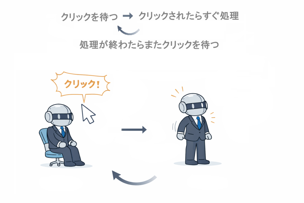 この「待つ → 反応する」という処理は、普通の Sub マクロだけではできません。