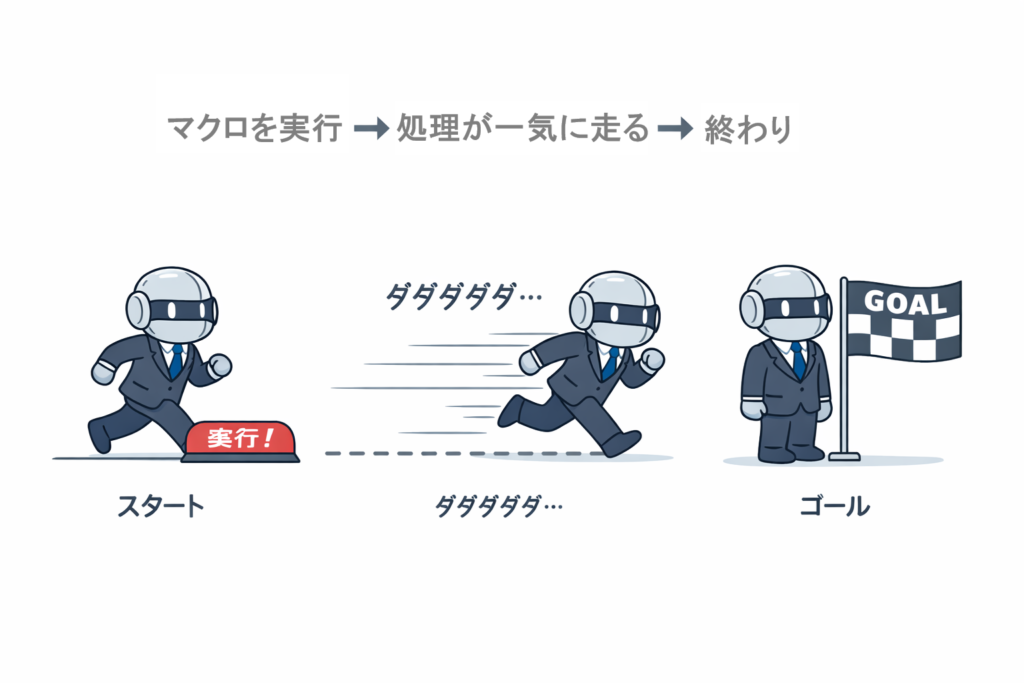 マクロを実行すると、処理が一気に走って、そのまま終わり。